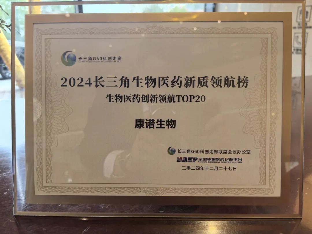 康諾生物入選長三角生物醫藥新質領航榜