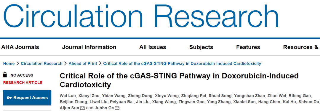 Circ Res | 葛均波院士、孫愛軍教授團隊和康諾生物揭示NAD損耗促進阿霉素心臟毒性(DIC)新機制